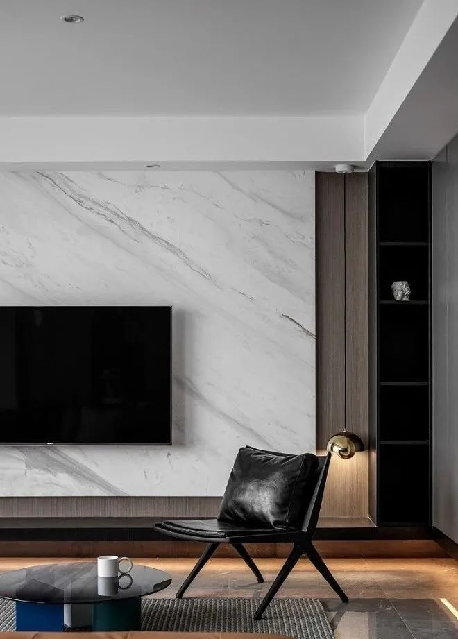 電視側墻天然材質進行對比搭配